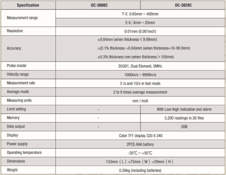 4. 5MHz Dual Element probeD5301 is standard delivery, optional 2MHz probe D2012, 5MHz probe D5008, 5MHzhigh temperature probe D5113, 7.5MHz probe D7006 and 10MHz probe D7004