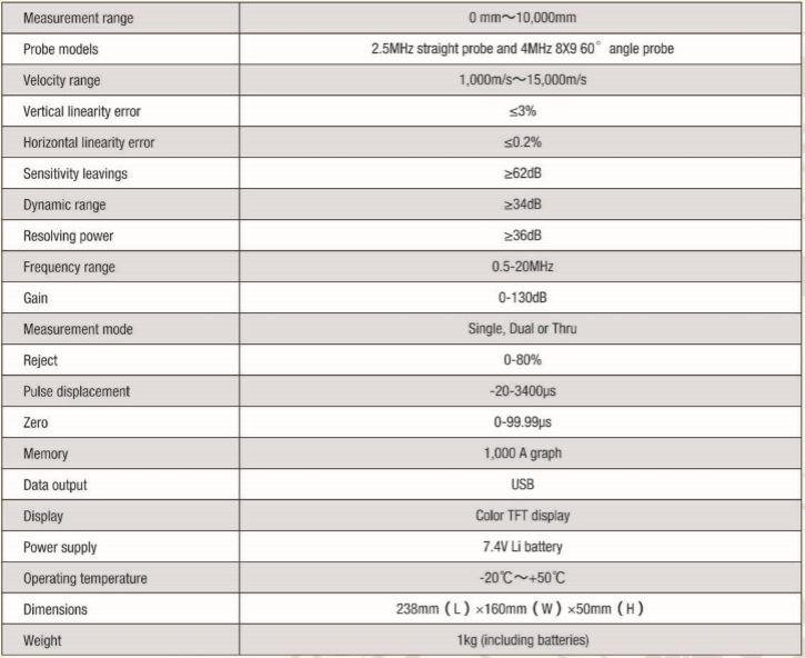 3. 2.5MHz Straight probe and 4MHz angle probeare available