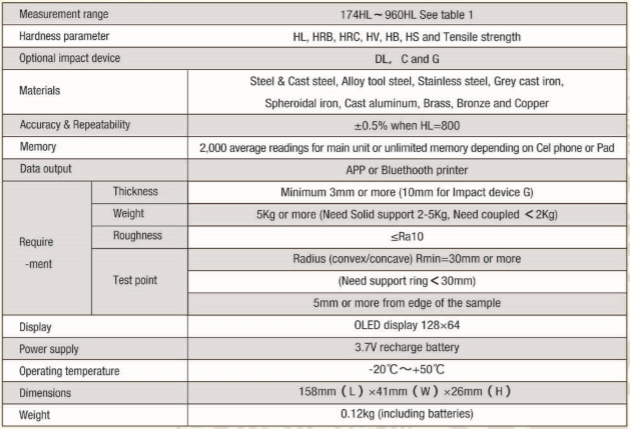 8. Based onHL value, conversion to HRB, HRC, HV, HB and HS is available